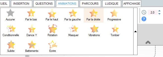 Pour ajouter un effet animé cliquer sur l'onglet ANIMATION
