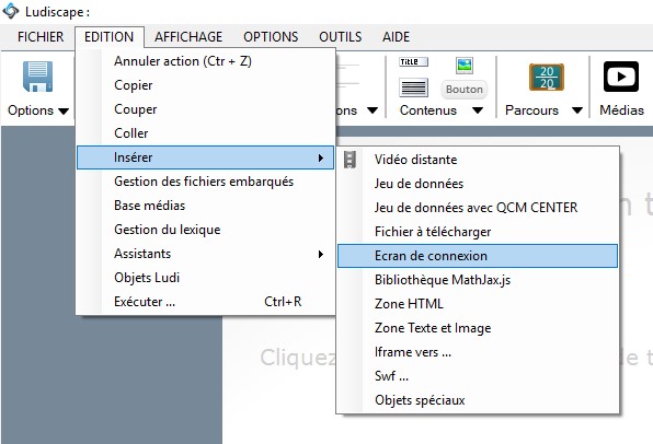 Pour intégrer facilement cet objet faire : Édition >> insérer >> Écran de connexion