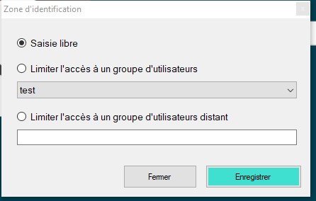 2. Sélection d'un groupe d'utilisateur local (définit dans Options>> Gestion des accès)