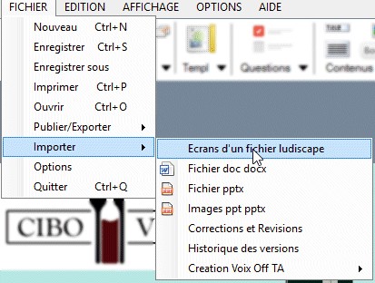 Pour importer un (ou plusieurs) écran(s) d'un autre projet faire Fichier>>Importer >> Ecrans d'un autre projet ludiscape