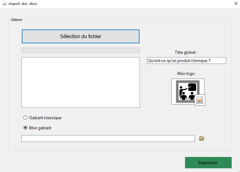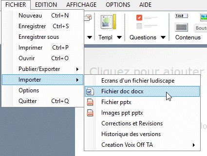 Pour importer un fichier docx et s'en servir comme base de travail utiliser :