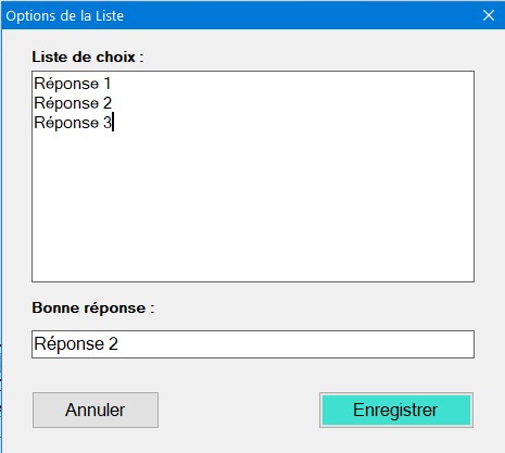 Le contrôle est réalisé grâce à une valeur Bonne réponse.