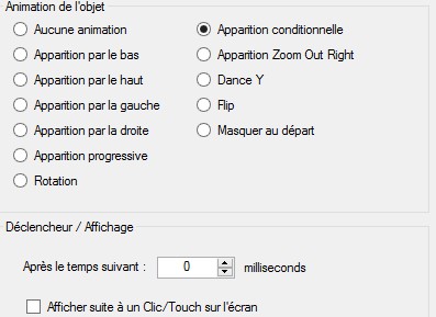 Pour cela nous allons utiliser l’animation apparition conditionnelle.