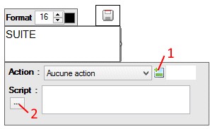 Pour associer votre propre script avec un bouton définissez l’action du bouton à « Aucune action »