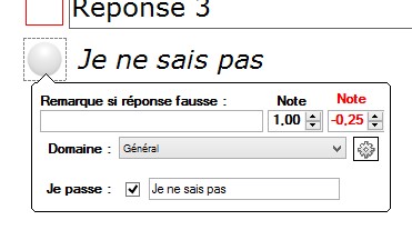 Les objets qui peuvent avoir une note possèdent un Bloc de paramétrage de la question
