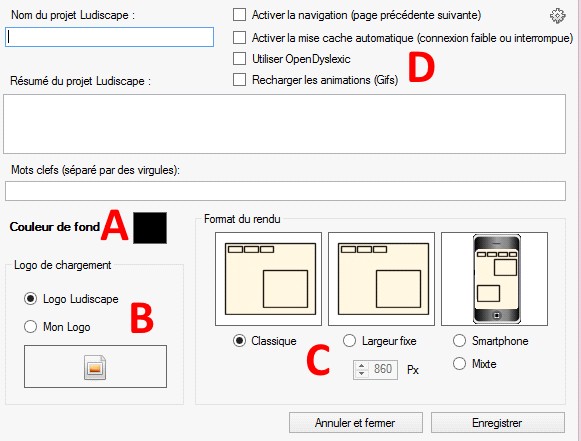 B – Permet de changer le logo de chargement de la page (par défaut Ludiscape)