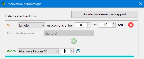 Un objet Redirection permet de rediriger vers une page selon le score ou le nombre de points.