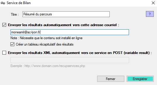 - Sauvegarde des résultats via un LMS