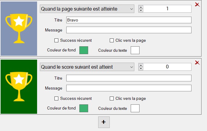 Le sucess ne s'affiche qu'une seule fois et disparait pour toujours (Sauf si la case à cocher sucesss récurent est cochée)